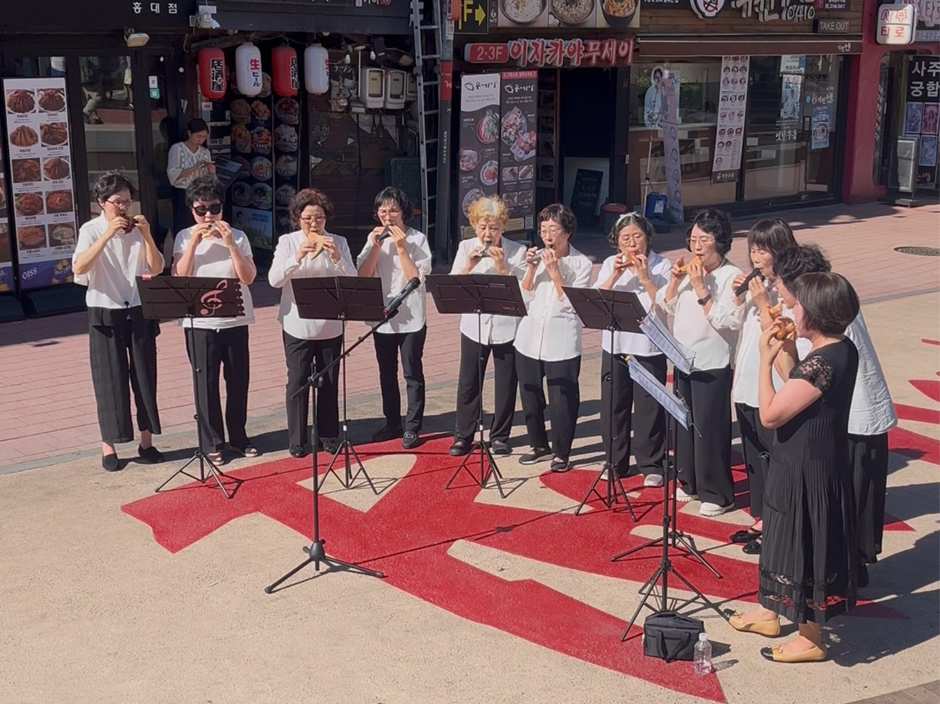 가장 먼저 무대를 연 건 오카리나 봉사대. 오카리나 특유의 맑고 포근한 음색이 번화가의 소음을 잠시 잊게 만들었다. 이어 훌라댄스 팀의 공연이 시작되자, 외국인 관광객들이 음악에 맞춰 어깨를 들썩이며 함께 손을 흔드는 장면도 연출됐다.